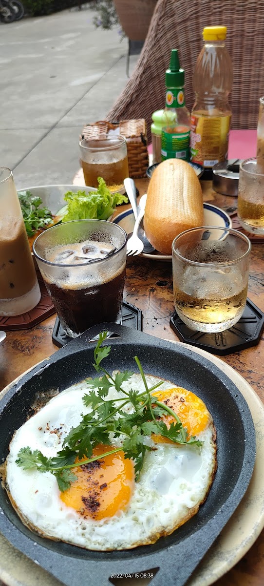 The menu leans into familiar favorites with a strong local twist. Breakfast stands out here, especially the egg dishes served in small pans, which adds a homely touch to the experience. There’s also a variety of easygoing dishes like Mỳ Quảng and Bún Thịt Xào that hint at a meal beyond just coffee and snacks, broadening its appeal to those looking for something more substantial without a formal sit-down feeling.